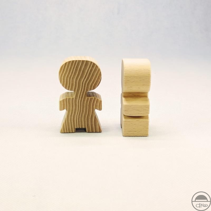 Dřevěný barevný panáček o rozměrech 7 x 4 x 2,5 cm je vyroben z bukového a jasanového dřeva. Na výběr jsou 2 druhy - kluk a holka.